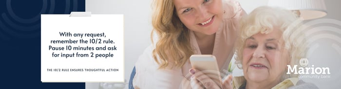 Above all, remember that your Marion Community Bank bankers are on your team. If you ever feel uncertain about a phone call, email, or request for money, don’t act—ask!
